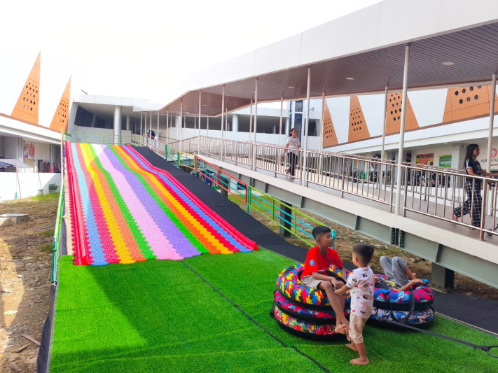 Baru Dibuka, Wahana Rainbow Slide di Tangga Arung Square Terpantau Ramai Setiap Hari