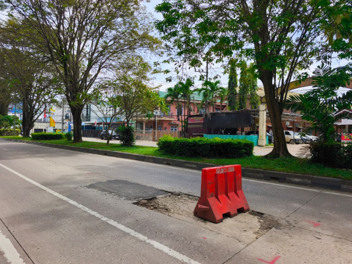 Terkait kerusakan jalan yang cukup mencolok di depan Indomaret (seberang Kantor Bupati Kukar), Linda menyebutkan penanganan permanen masih dalam tahap proses.