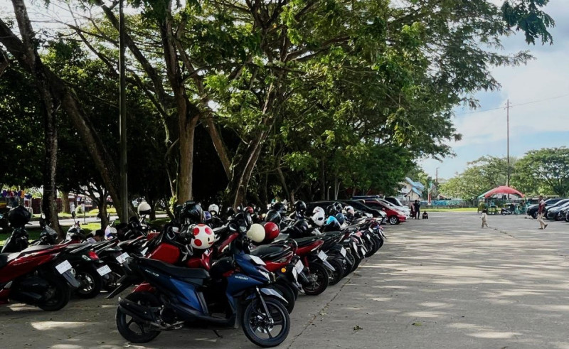 Parkiran Pulau Kumala dipadati pengunjung di Hari raya Idul Fitri ke-3, Selasa (24/3/26). (Dilla/Media Etam)