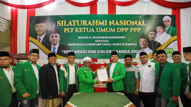 Mediaetam.com, Jakarta – Plt Ketua Umum Partai Persatuan Pembangunan (PPP) Muhamad Mardiono menyambangi Himpunan Alumni Miftahul Huda (Hamida) di Jawa Barat. Dilansir dari Liputan6.com Selain bersilaturahmi, Hamida juga melakukan deklarasi dukungan terhadap PPP bertajuk One Color.