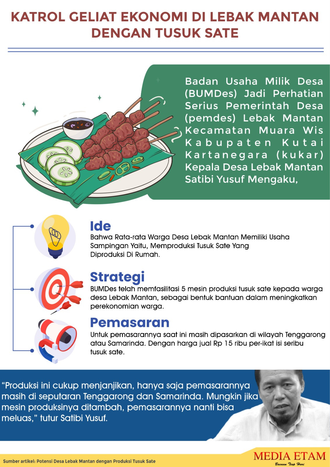 Satibi menilai dengan adanya usaha tusuk sate ini, tentunya bisa meningkat perekonomian masyarakat di Desa Lebak Mantan. Menurutnya hal tersebut menjanjikan, karena tidak ada kendala dalam hal bahan baku.