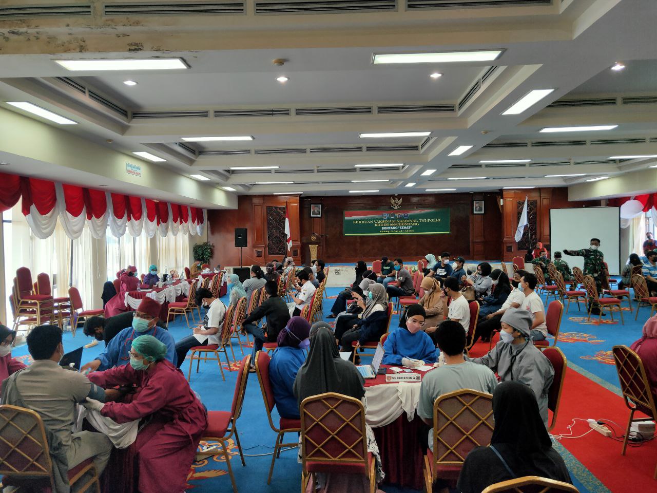 Mediaetam.com, Bontang – TNI, Polri, dan Kementerian Kesehatan (Kemkes) menggelar vaksinasi massal. Kegiatan ini merupakan arahan dari Presiden Joko Widodo untuk mengejar target 1 juta vaksin per harinya
