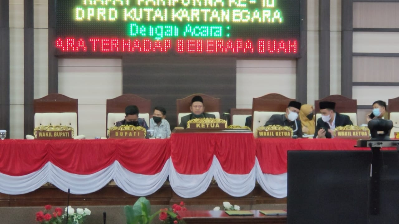 Kukar – DPRD Kukar menggelar Rapat Paripurna pada Senin (11/10/2021) siang. Dengan agenda pembahasan terkait pengesahan Rancangan Peraturan Daerah (Raperda). Pimpinan DPRD Kukar beserta Wakil Bupati Kukar turut menghadiri agenda tersebut.