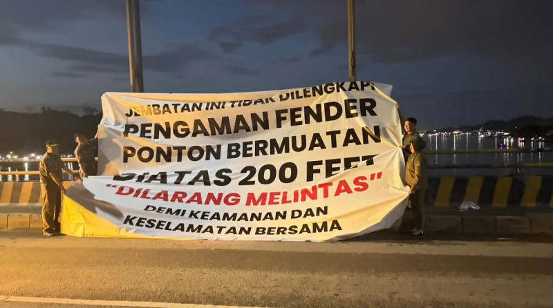 “Pemasangan spanduk ini sebagai bentuk pencegahan agar tidak terjadi kerusakan lanjutan pada jembatan serta untuk menjamin keselamatan pelayaran. Larangan ini berlaku bagi kapal atau tongkang dengan muatan di atas 200 feet,” ujarnya dalam keterangan tertulis, Selasa (23/12/2025), mengutip dari laman resmi pemprov, Rabu.